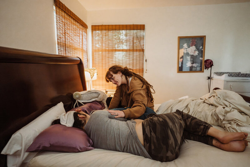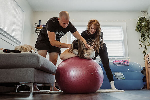 Natalie with laboring client, performing Side-Lying Release from Spinning Babies